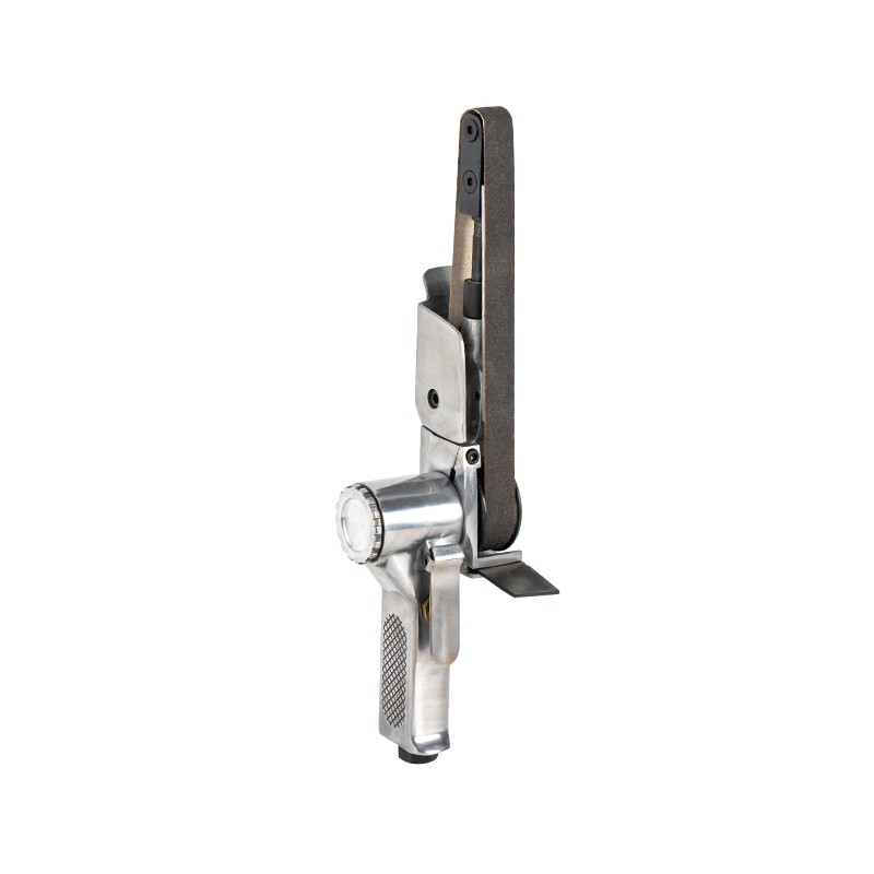 20 mm jernhåndholdt Air Belt Sander er et almindeligt anvendt værktøj til metalbehandling og overfladebehandling. Det består af et håndholdt legeme og et udskifteligt sandbælte, der er ansvarlig for slibning, polering eller polering af emnets overflade. Det drives af trykluft til at give højhastigheds roterende sandbæltebevægelse. Brugere kan justere arbejdspositionen og vinkelen på slibestemmen ved at kontrollere værktøjets driftshåndtag for effektivt at behandle overfladen af emnet. Denne Air Belt Sander bruges hovedsageligt til afgrænsning, overfladepolering og nivellering i metalforarbejdning. For eksempel er det vidt brugt i processer såsom afgrænsende svejsesømme og ru polering af metaloverflader efter svejsning. Det håndholdte design gør det let og fleksibelt at betjene, velegnet til arbejdsemner i forskellige størrelser og former. Før brug er det nødvendigt at kontrollere slid på sandbæltet for at sikre, at det er installeret korrekt og fast. Bær personligt beskyttelsesudstyr, når du bruger det for at undgå skade på kroppen og åndedrætssystemet forårsaget af støv.